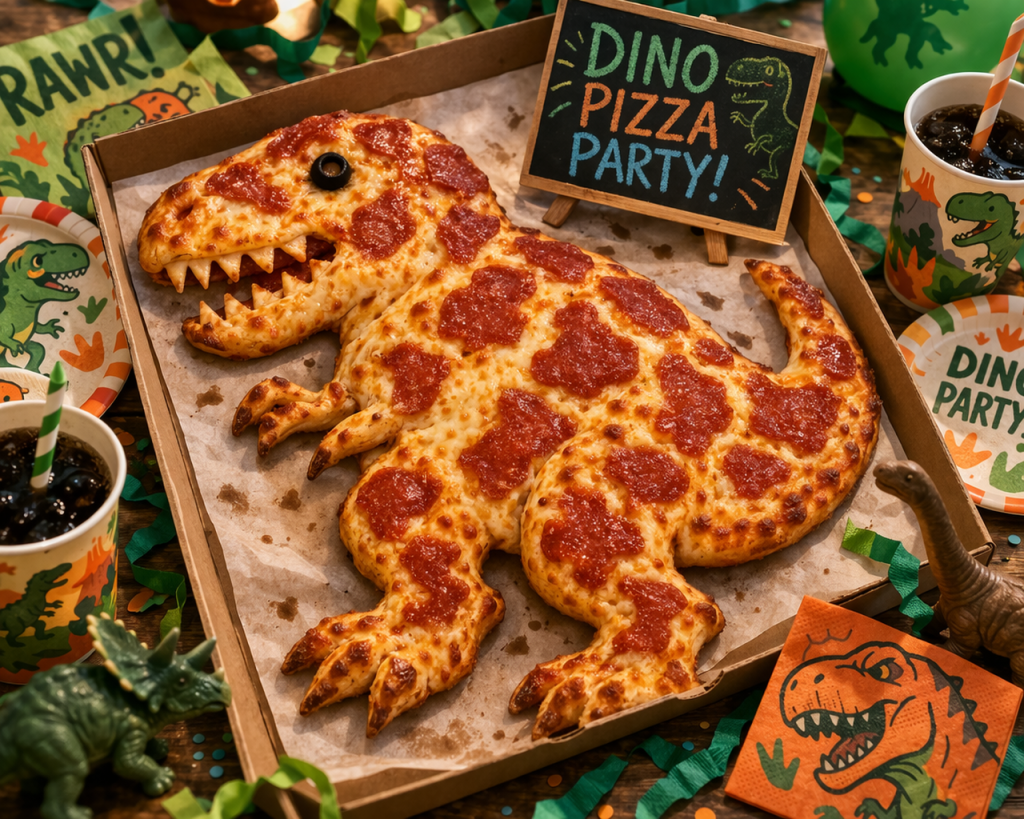 You can do dinosaur pizzas (green arugula claws), pizza cats with pepper whiskers, underwater pizzas with squid ink and seafood. The toppings tell a story.